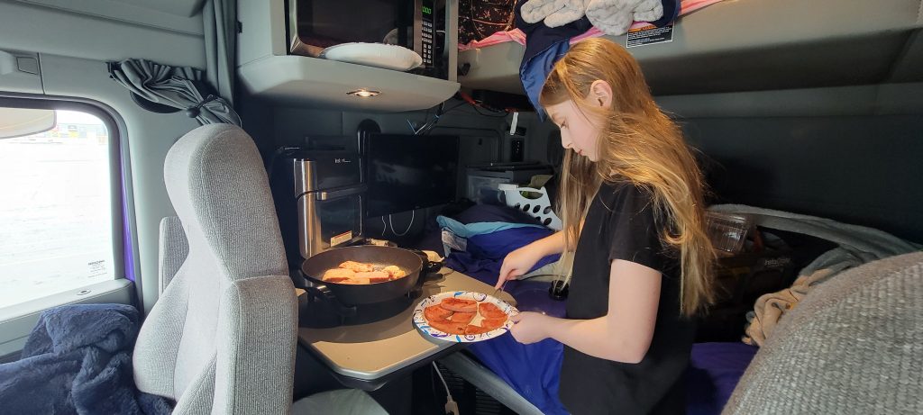 My daughter Chloe and I had our first ever outing together on the truck. She was so excited to be with me, and I was happy to have her with me as well. She had a ball, and we had some pretty tense moments, like driving through some strong winds and even a blizzard. I am still in a debate about us going out again in the summer together. Overall, she had a great time and it was a really great time.